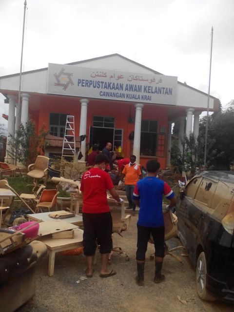 Misi bantuan mangsa banjir Perbadanan Perpustakaan Awam Negeri Sembilan ke Perpustakaan Awam Cawangan Kuala Krai