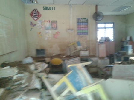 Misi bantuan mangsa banjir bersama ke Perpustakaan Desa Kampung Kemubu